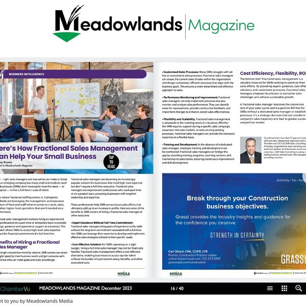 Recent article Cory wrote was featured in the December issue of Meadowlands Magazine / Pg. 16